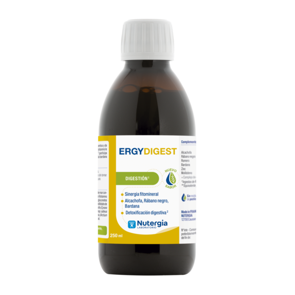 ERGYDIGEST es un complemento alimenticio líquido formulado para favorecer la digestión, estimular la función biliar y facilitar el confort digestivo tras las comidas. Gracias a su combinación de plantas digestivas, oligoelementos y minerales, ayuda en casos de digestiones pesadas, hinchazón, gases o dispepsia.