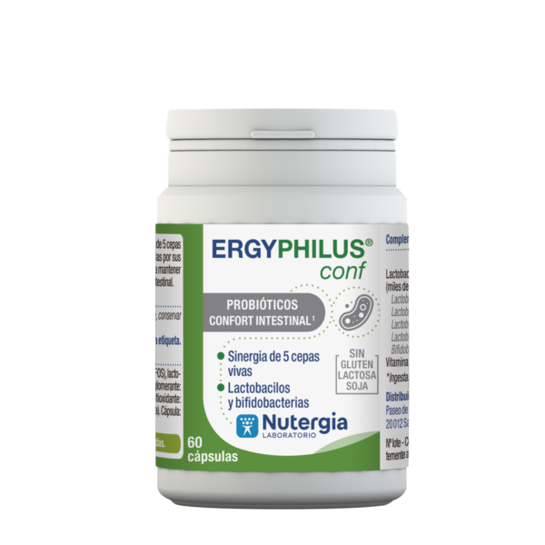 ERGYPHILUS® Conf puede recomendarse para contribuir al equilibrio de la flora intestinal aportando lactobacilos y bifidobacterias así como para el binestar intestinal.