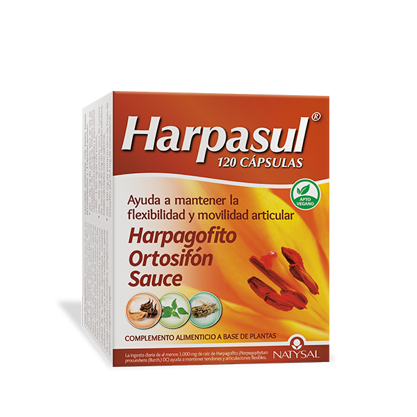 HARPASUL de Natysal es un complemento alimenticio a base de extractos secos titulados de harpagofito, ortosifón y sauce blanco, con reconocidas propiedades antiinflamatorias, analgésicas y diuréticas naturales. Está diseñado para apoyar la movilidad articular, aliviar molestias musculares y articulares, y ayudar a la eliminación de líquidos.