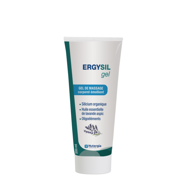 ERGYSIL Gel aporta silicio orgánico que favorece la elasticidad y la flexibilidad de la piel. Los oligoelementos antioxidantes se combinan con el aceite esencial aspic de lavanda orgánica para calmar. Su aplicación mediante un masaje emoliente favorecerá la relajación del cuerpo.